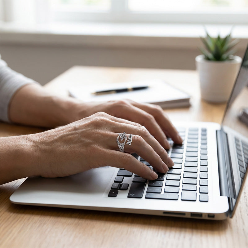 VERSTELLBARES OFFENES DESIGN: Dank des praktischen offenen Designs lässt sich der Ring mühelos an die meisten Fingergrößen anpassen. Dies gewährleistet einen bequemen und sicheren Sitz ohne präzise Größenbestimmung.