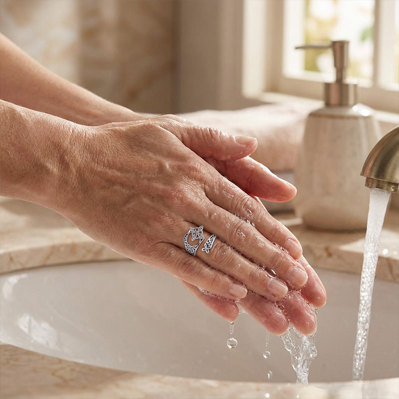 Um den Glanz zu erhalten, vermeiden Sie den Kontakt mit aggressiven Chemikalien wie Parfüm, Körperlotion und Chlor.