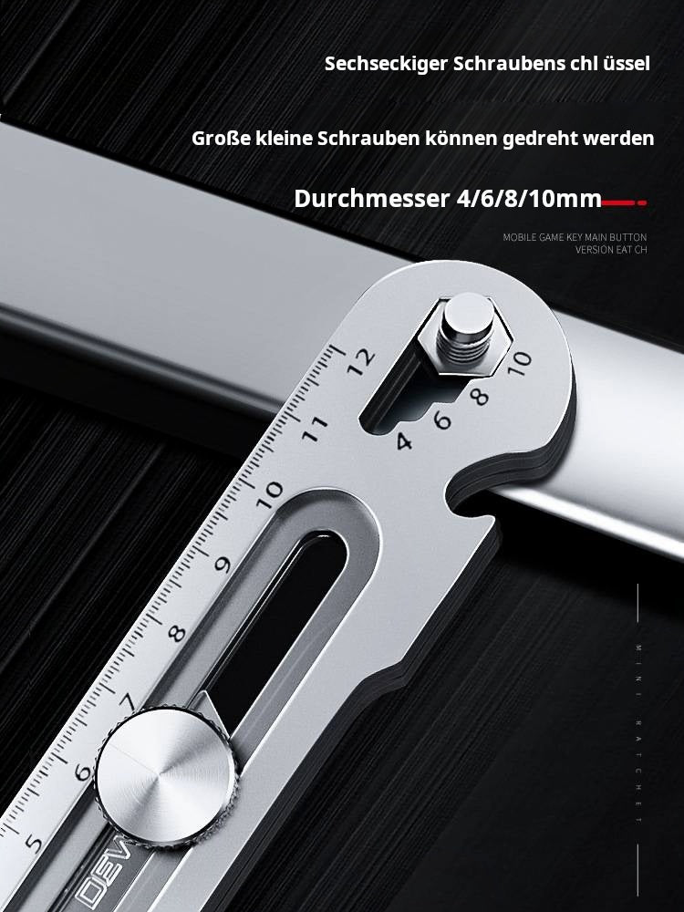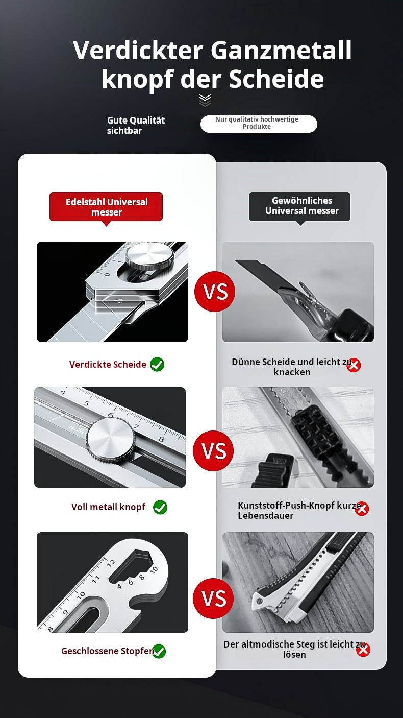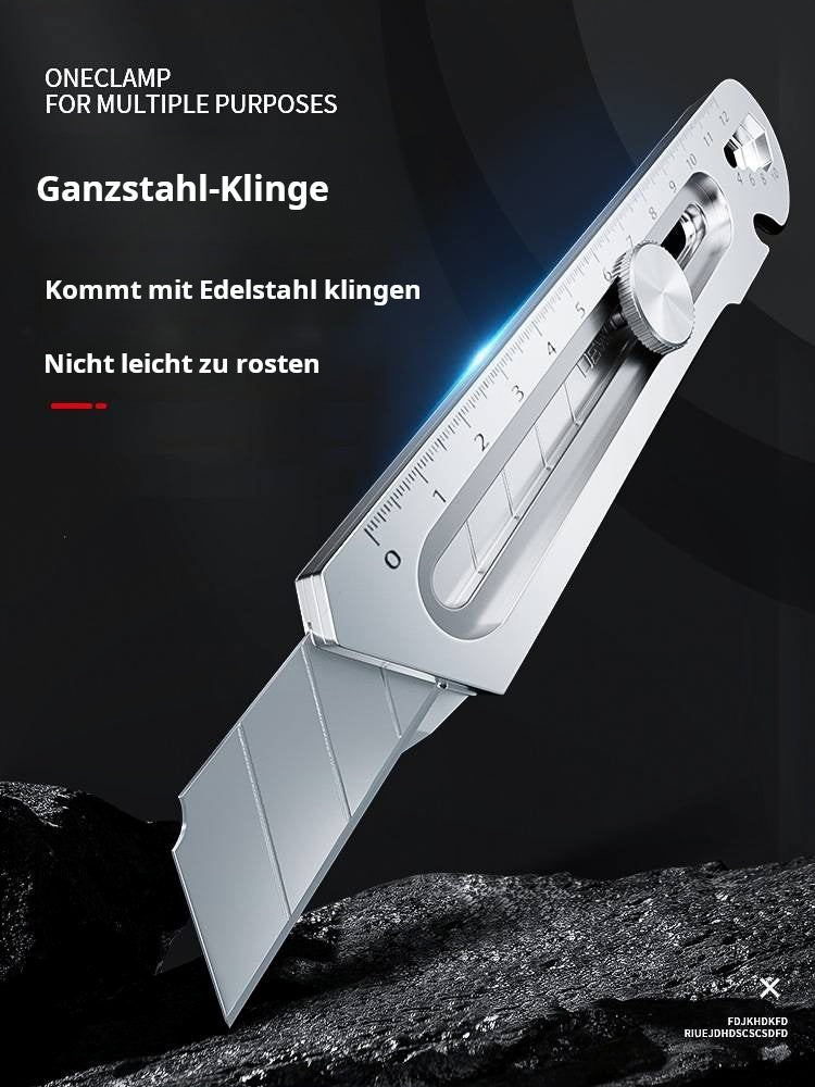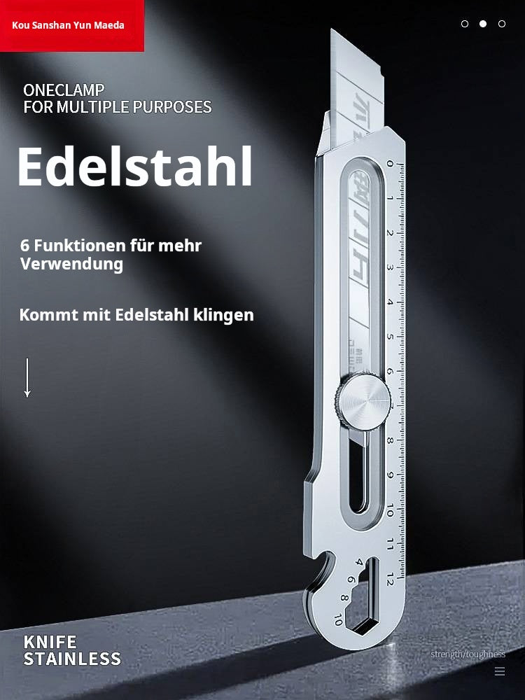 MULTIFUNKTIONALES UND VIELSEITIGES WERKZEUG: Kombiniert mehrere wichtige Werkzeuge in einem kompakten Design, darunter einen Reinigungsschaber, ein Universalmesser, einen Schraubenschlüssel (8-13 mm), einen Flaschenöffner und ein Linealund vereinfachen Sie Ihre täglichen Aufgaben mit Leichtigkeit.